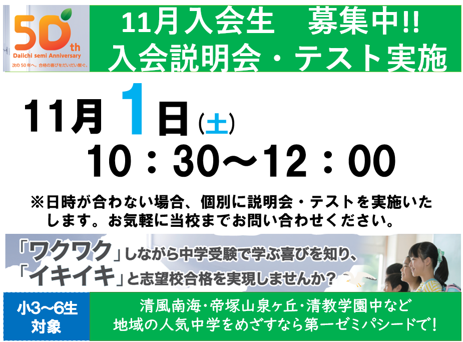 - 次年度の中学入試に向け、第一ゼミパシードでは、小6受験生を対象に、『志望校特訓』を実施いたします。