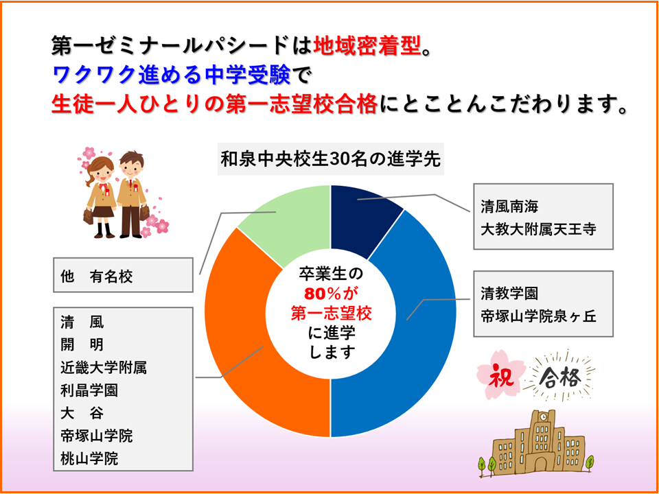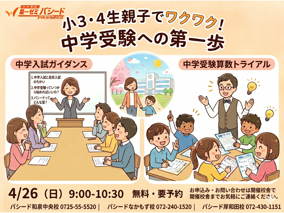 清風南海、清教学園、帝塚山泉ヶ丘中をめざすなら、パシードへ。お子さまが自らワクワクして中学受験に取り組み、自らの手で志望校合格をつかんでいく。第一ゼミパシードは、受験を通して、さらに受験の後も、何事にも前向きにチャレンジして成果につなげることができるお子さまを育んでいきます。
