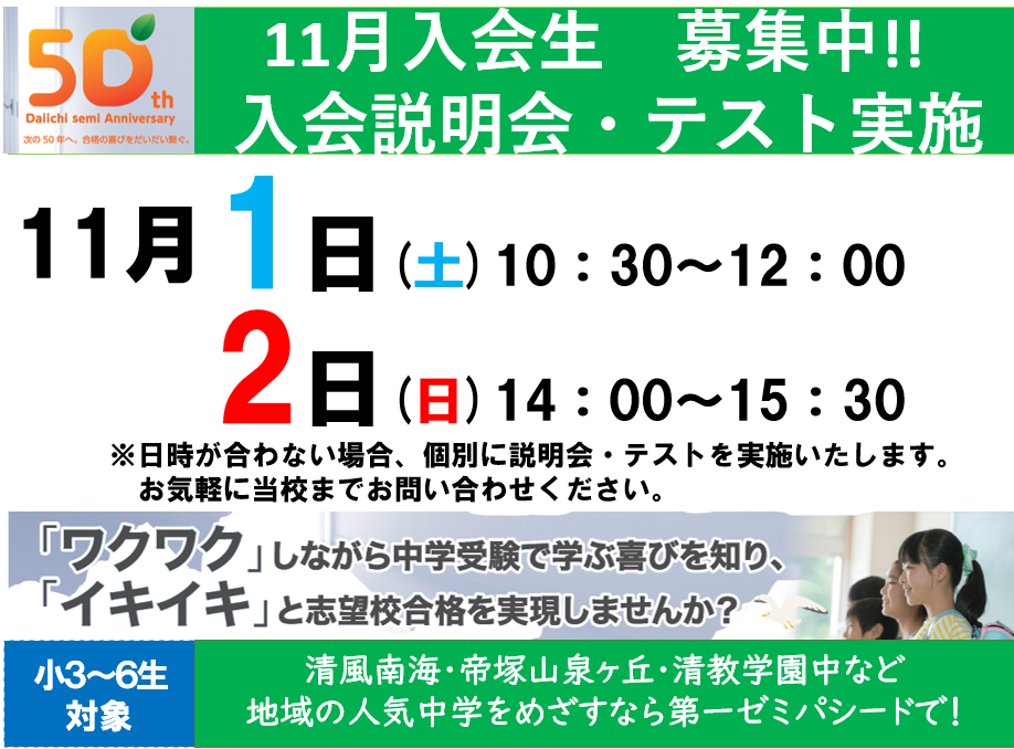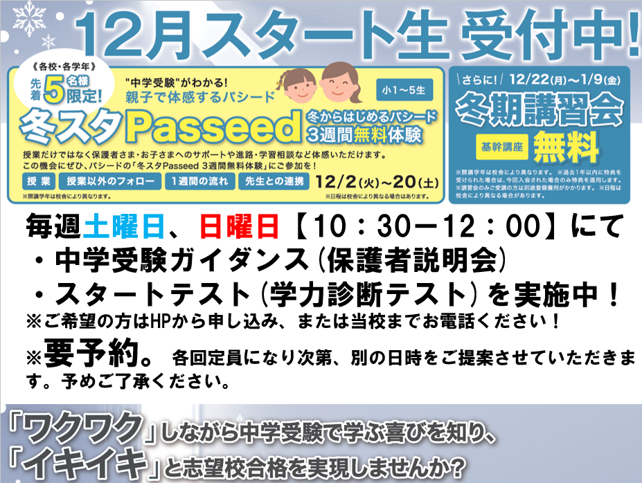 - 次年度の中学入試に向け、第一ゼミパシードでは、小6受験生を対象に、『志望校特訓』を実施いたします。