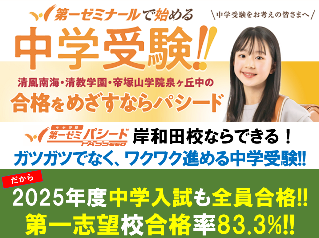 - 第一ゼミナール・第一ゼミパシードは、公益社団法人全国学習塾協会が制定した基準(及び同実施細則)に従い、合格実績として集計しています。詳細は第一ゼミパシードHPの「合格実績」をご参照ください。